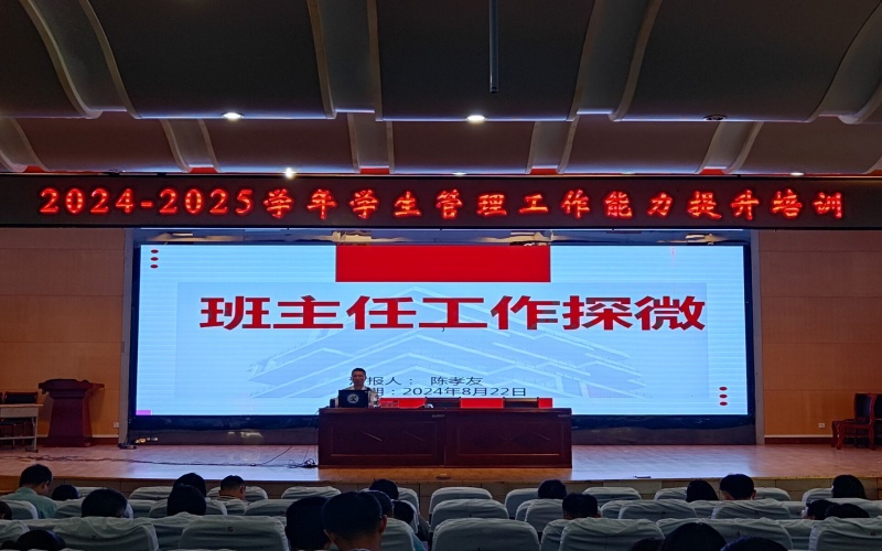 为增强学校学生管理工作的实效性,提高学生管理队伍的思想认识和业务能力,提升班主任的工作效能与成就感,2024年8月22日,学校举办2024年班主任教育管理能力集中培训学习、交流研讨活动。全体班主任、辅导员、系部学生管理干部、近三年新进教师、学生工作处、团委等学工管理工作人员参加培训。