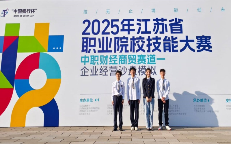 3月23日,由江苏省教育厅主办的江苏省职业院校技能大赛中职财经商贸赛道企业经营沙盘模拟赛项在昆山落下帷幕。经过激烈角逐,我校经贸旅游系G22402穆雨、张悦,G23401成志颖,G23402舒杰等4名学生选手凭借扎实的专业功底、出色的团队协作和灵活的应变能力,从全省26支参赛队伍中脱颖而出,一举夺得该赛项金牌,展现了学校在职业教育领域的高质量育人成果。
