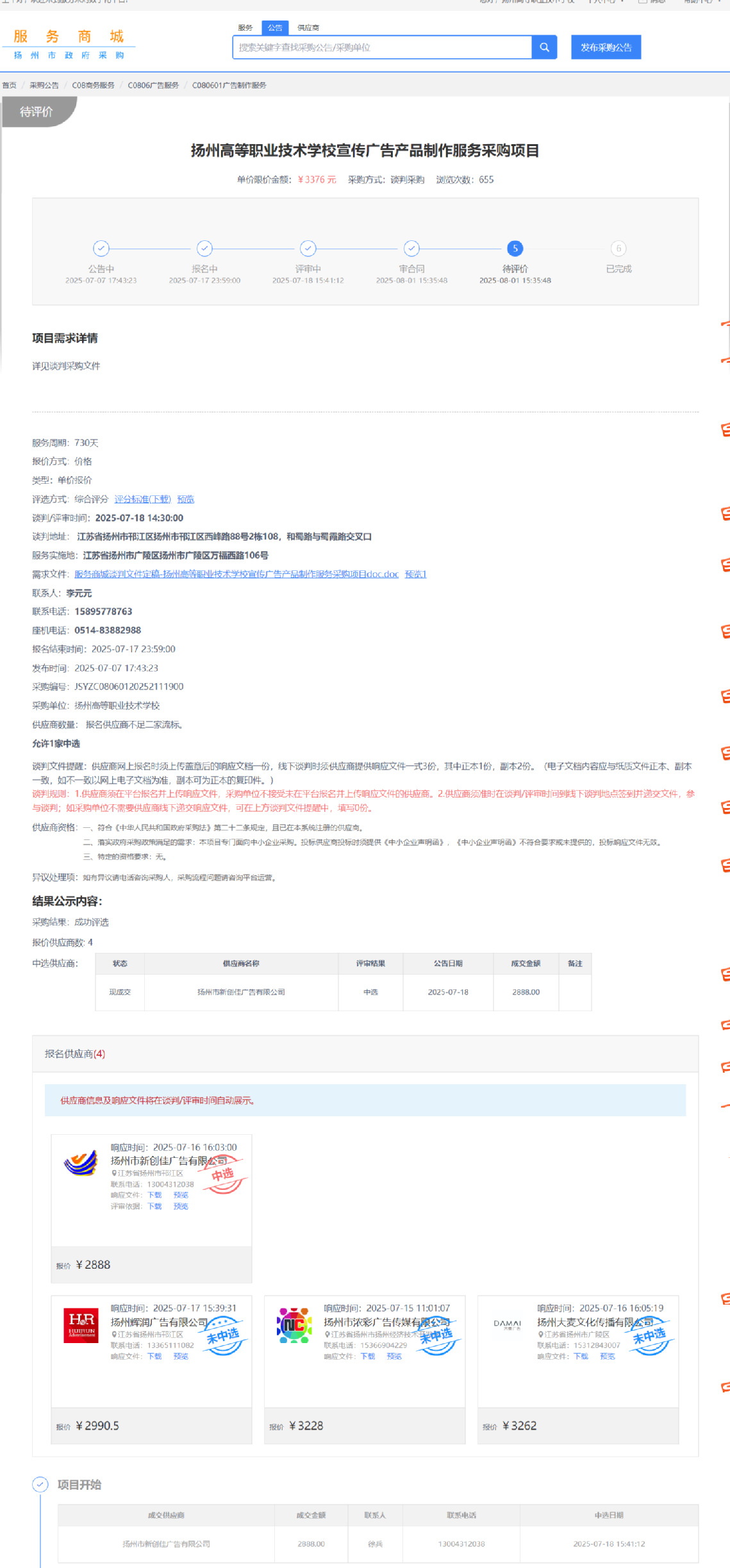 宣传广告产品制作服务采购项目中标公告