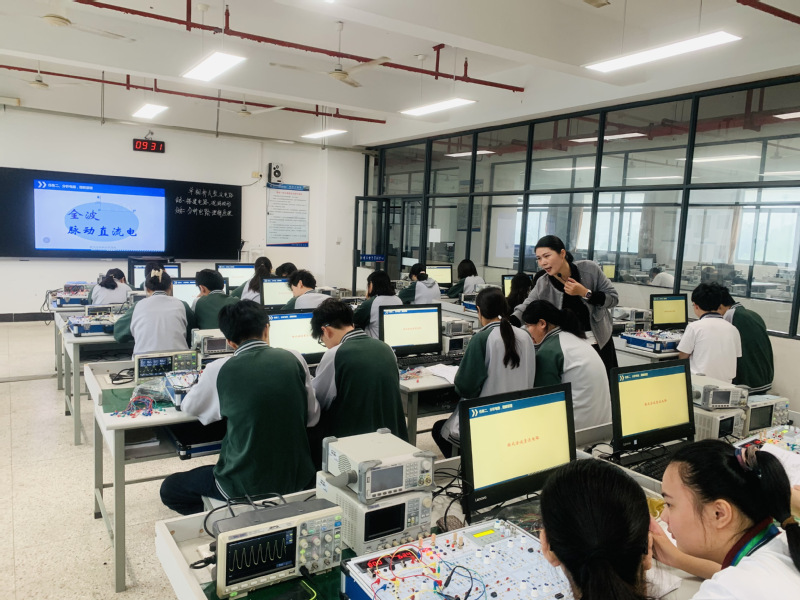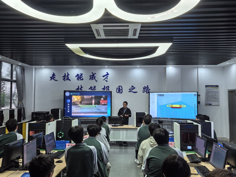 在教学观摩与评课研讨环节,六节跨学科、跨专业的研究课同步开展,涵盖思政、数学、电子技术、智能制造等领域,包括《理想信念是精神之“钙”》《对数的概念》《单相桥式整流电路》《三人表决器电路的制作》《企业生产案例之螺纹的铣削加工》以及《层层筑梦:熔融沉积成型3D打印全流程解析》。课程结束后,各听课组立即组织深入评课与研讨,切实落实“讲必评、评必研”。