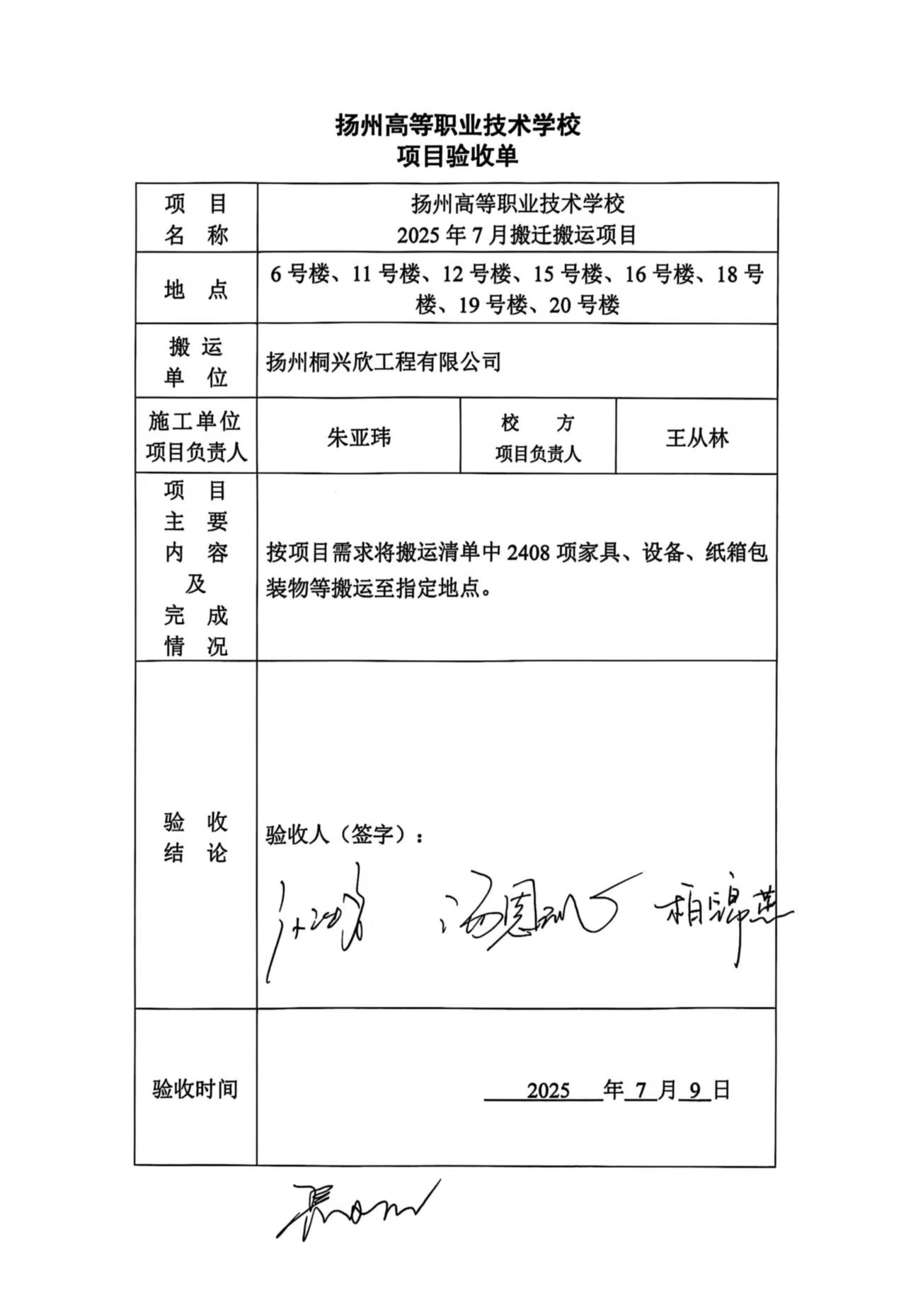 6、11、12、15、16、18、19、20号楼搬迁搬运项目验收单
