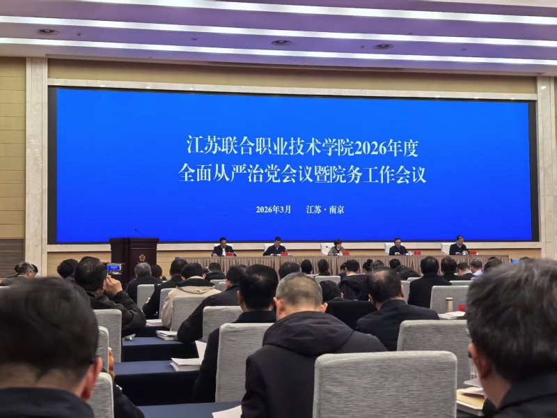 3月13日,江苏联合职业技术学院召开2026年度全面从严治党会议暨院务工作会议。省教育厅副厅长、一级巡视员曹玉梅,省纪委监委一级巡视员沈辉出席会议并讲话。省教育厅职业教育处处长马万全出席会议。学院党委书记王伟作全面从严治党报告,院长沈本领作院务工作报告。扬淮宿片区工作组组长、扬州分院党委副书记、校长赵杰出席在大会上作交流发言。