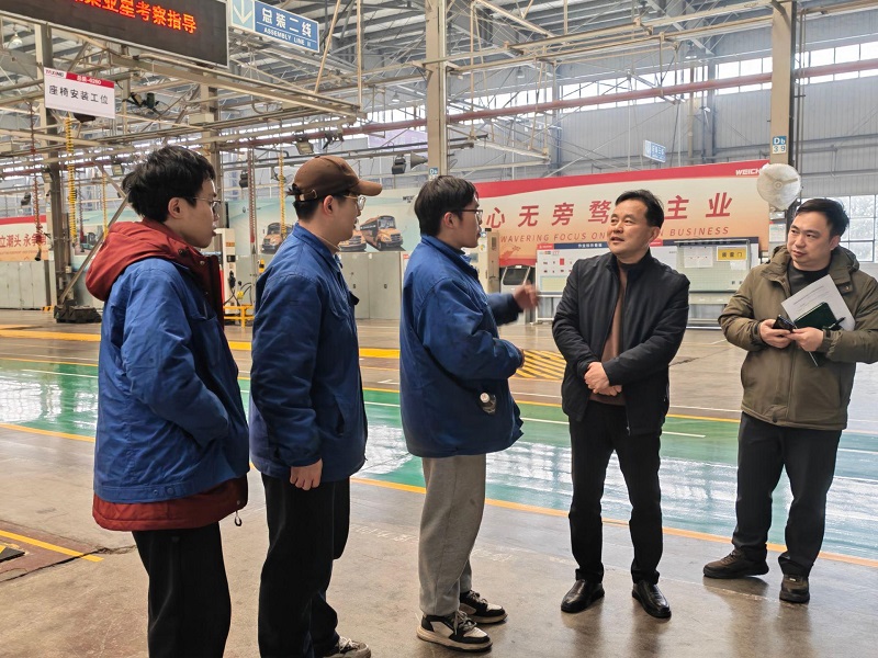 随后,走访组来到扬州亚星客车股份有限公司,刘厚林与实习学生亲切交谈,详细询问住宿、就餐等生活保障情况。得知企业为学生配备崭新公寓宿舍,生活服务周到,学生对工作生活条件均表示满意。公司生产部俞部长、人力资源部严所娟部长对校方一行表示欢迎,感谢学校长期以来的人才支持,高度认可实习学生的综合表现,认为学生专业基础扎实、适应能力强、岗位融入快,希望与学校建立长期稳定的深度合作关系,持续吸纳学校优秀技能人才。