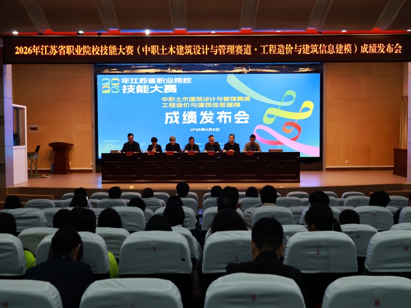 4月8日下午,2026年江苏省职业院校技能大赛中职土木建筑设计与管理赛道·工程造价与建筑信息建模项目成绩发布会在学校毕智楼报告厅举行,为期三天的赛事圆满落下帷幕。大赛专家组长、东南大学陆惠民,大赛裁判长、南京科技职业学院蒋红焰,大赛专家、盐城工业职业技术学院李莉,大赛监督、南京工业职业技术大学王云凤,大赛联络员、江苏海事职业技术学院黄清等专家和我校党委书记束玉良出席会议,各市领队、指导教师及参赛选手共同参加。大赛巡视员、南京交通职业技术学院贾俐俐主持发布会。